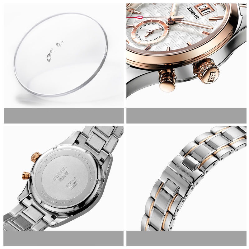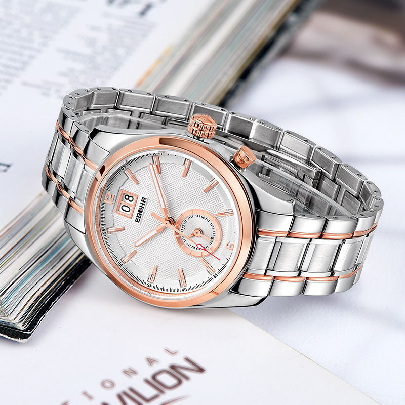 Ebohr Swiss Quartz Movement Mens GMT Business 40mm Wrist Watches 5005