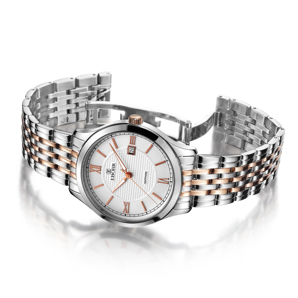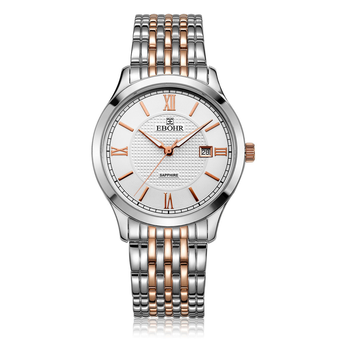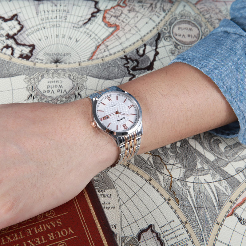 Ebohr 39mm Mens Japanese Quartz Movement Business Stainless Steel Wrist Watches 3002