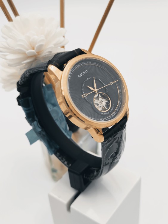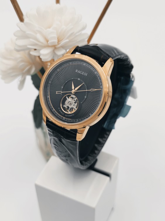 Limited edition special crown at 12 o'clock Ragesi Japanses automatic mechancial men's watch Black 89031G