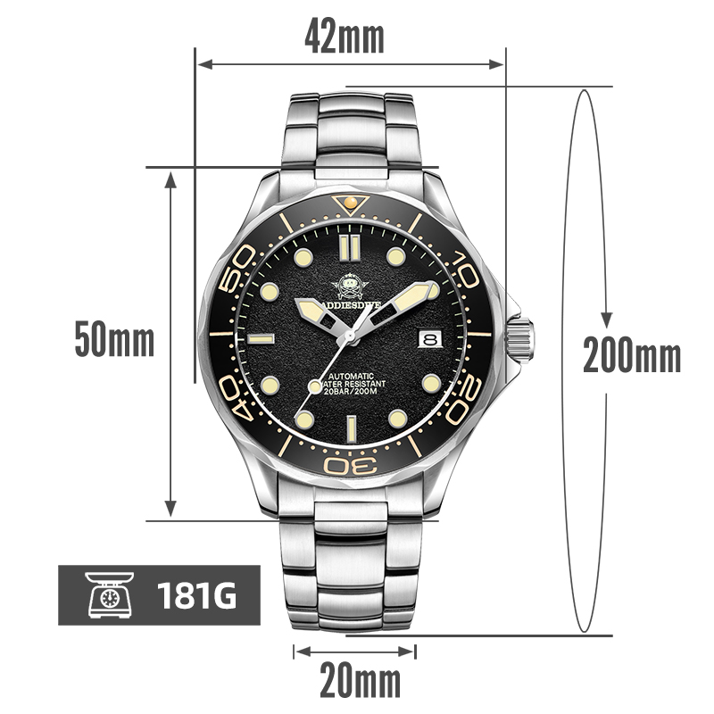 Addiesdive Mens diving watches 20BAR luminous automatic mechanical 42mm wristwatches AD2106