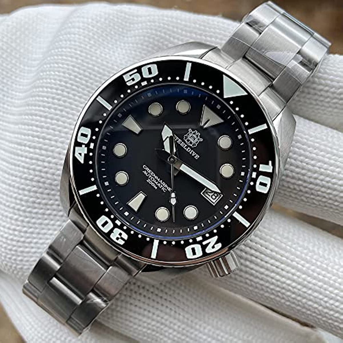 Steeldive Black Dial 44.9mm Japan Automatic Mechancial Movt Swiss BGW9 Luminous 20ATM Mens Turtle Dive Watch SD1971