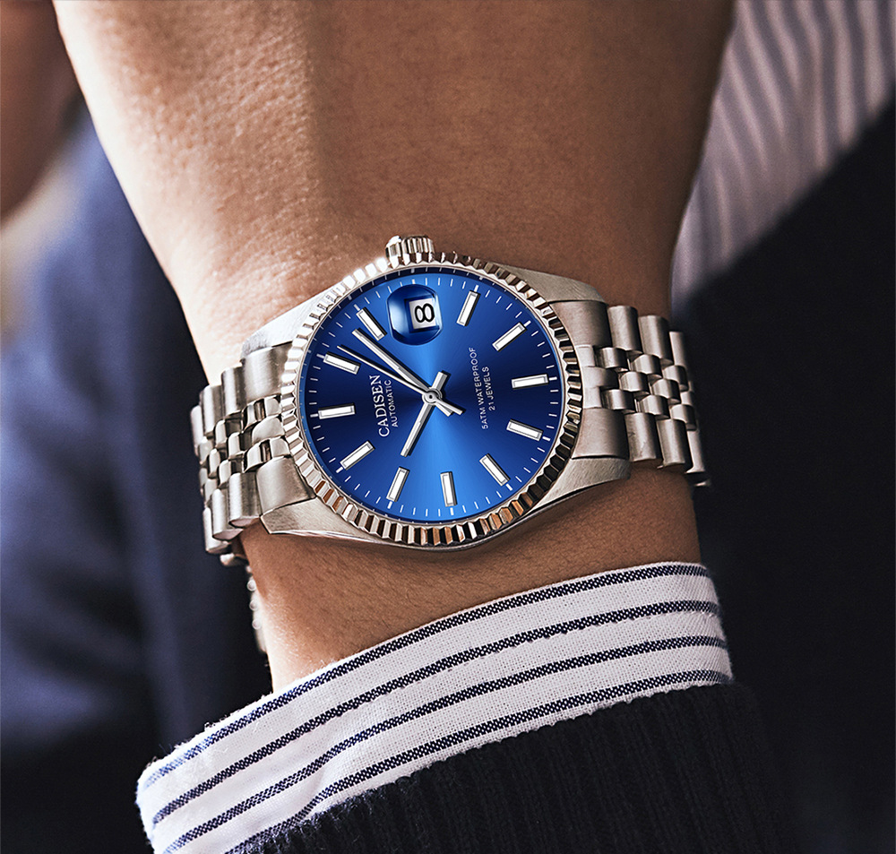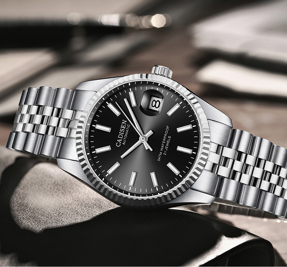 38MM Case Cadisen Mens Watches Sapphire Automatic Mechanical 5BAR Luminous Causal Business Wristwatch C8053