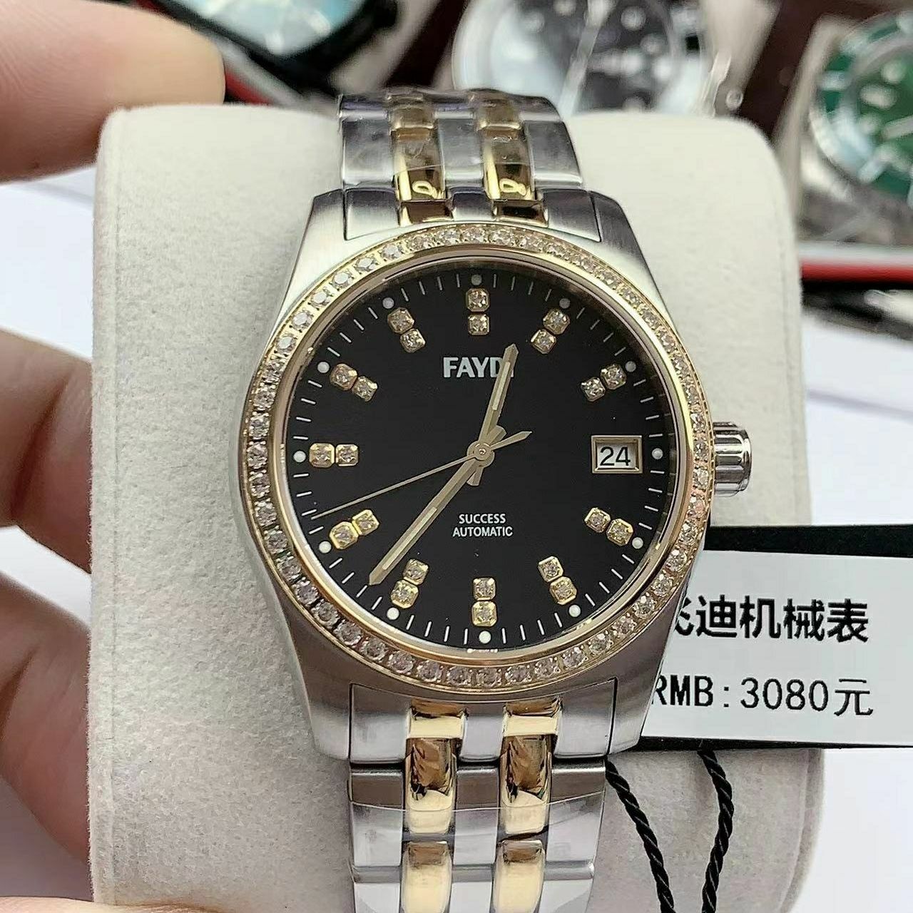 Faydi Vintage Diamond-bordered Mens Japan Mechanical Movement 24-Jewels Business Wrist Watches #F111