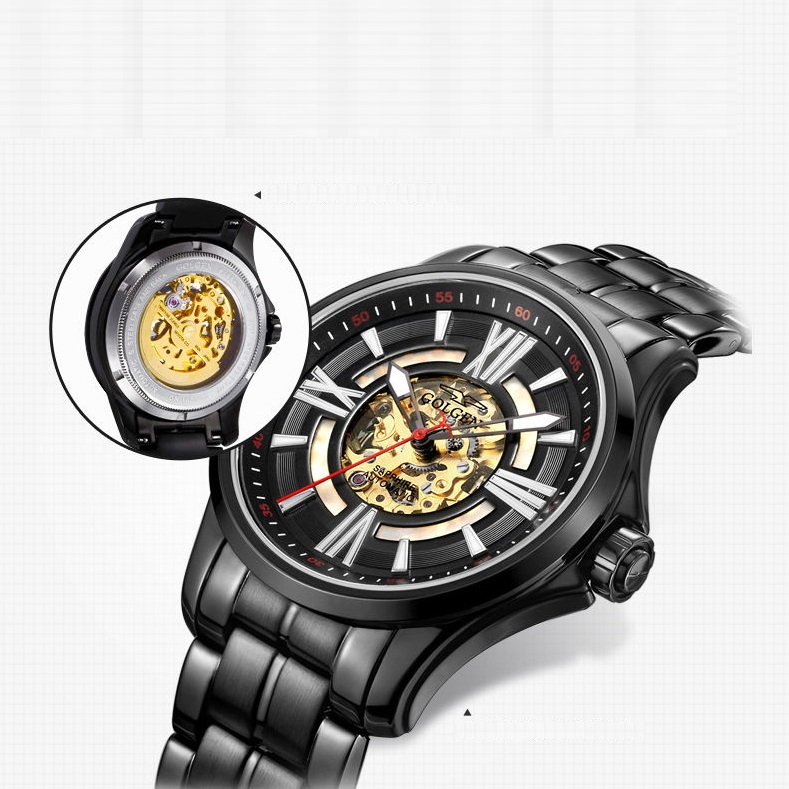 Golgen Mens skeleton watches Japanese automatic mechanical movement wristwatches 16001M