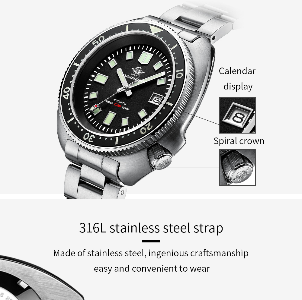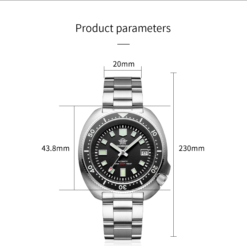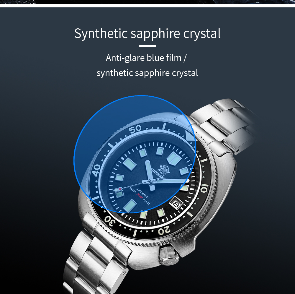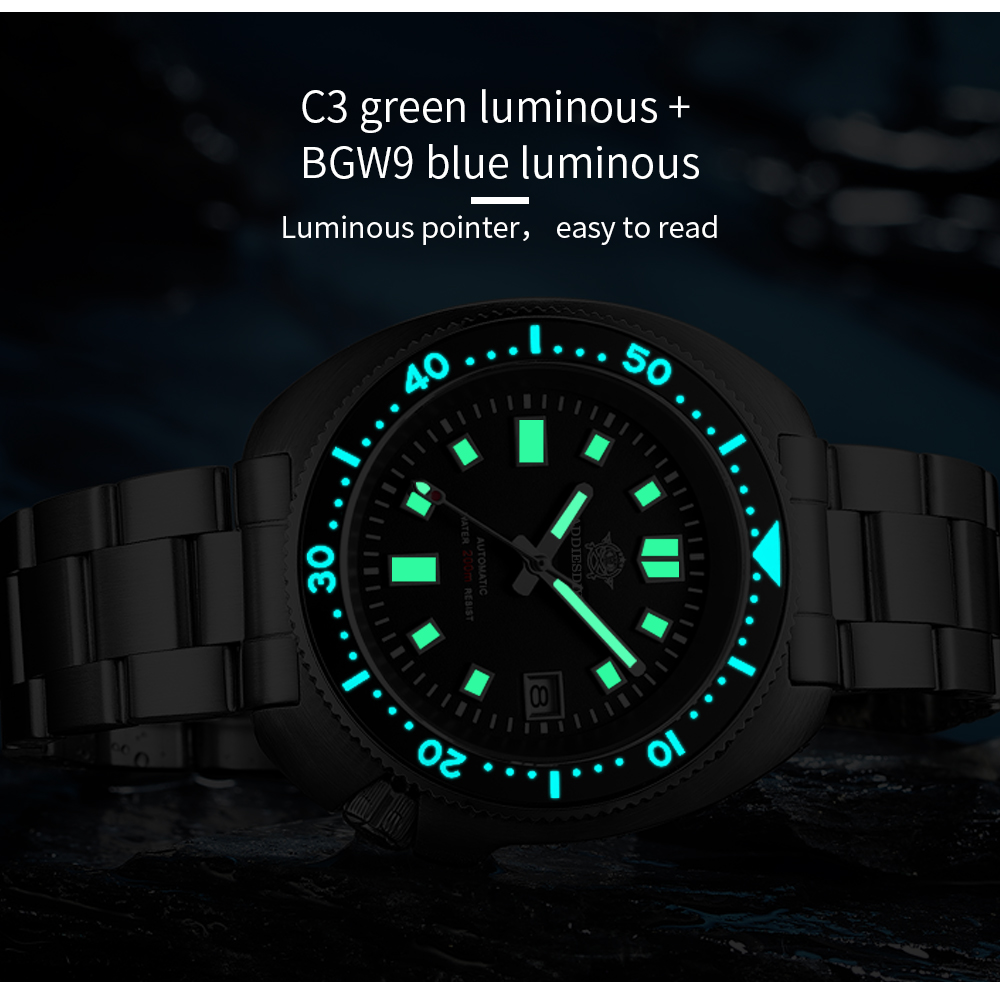 Addies Mens turtle watches 200M submarine luminous 43.8mm automatic machanical wristwatches MY-H8