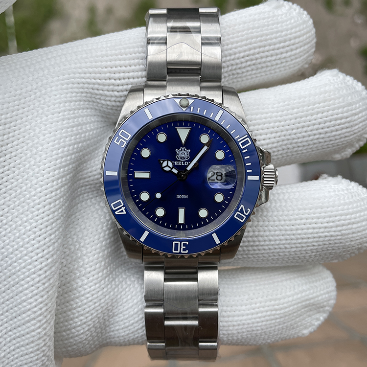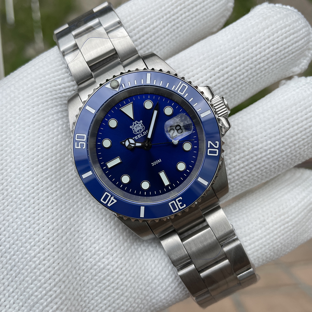 Mens Japanese quartz movement 30bar super luminous 41mm submarine diving watches Blue SD8205