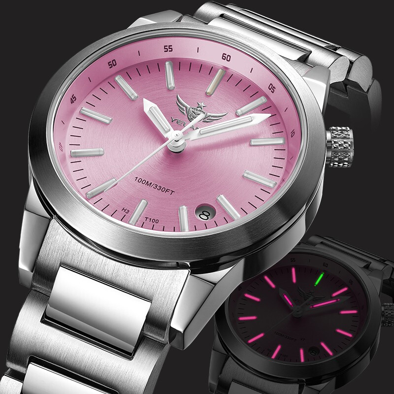 Women T100 Tritium Watch Swiss H3 Self-Luminous 100M Resistance Sapphire Quartz Wristwatch V1010SW