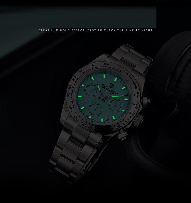 Mens watch 40mm dial 100M waterproof chronograph tachymetre luminous sports quartz watches PD1727