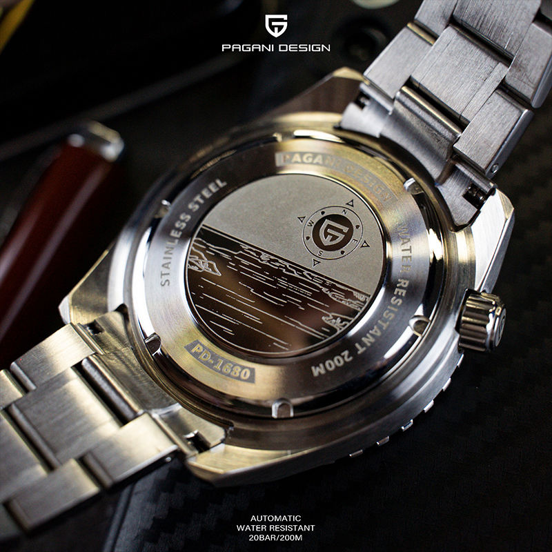 Men's watch 44mm black dial sapphire 20bar luminous automatic mechancial wristwatches PD1680