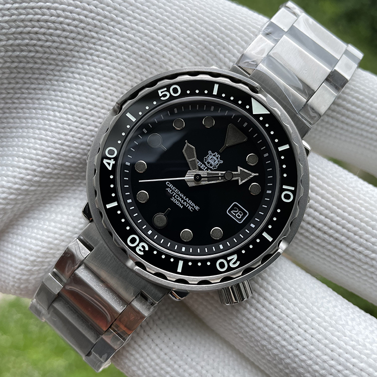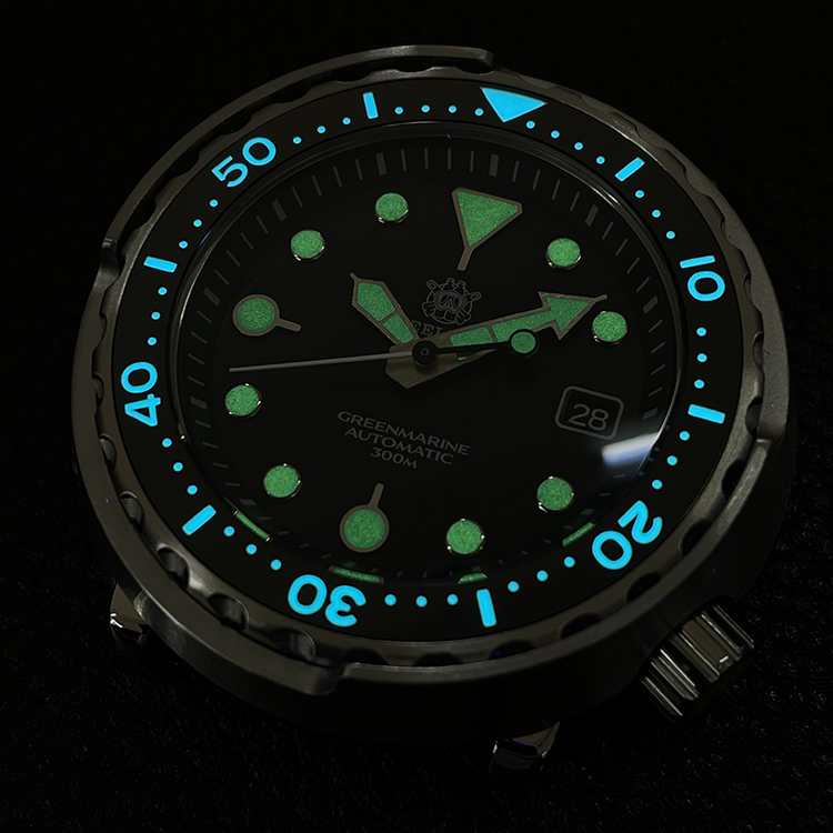 Steeldive Black Dial Green Luminous 30ATM 47.5MM NH35 Automatic Tuna Mens Dive Watch SD1975T