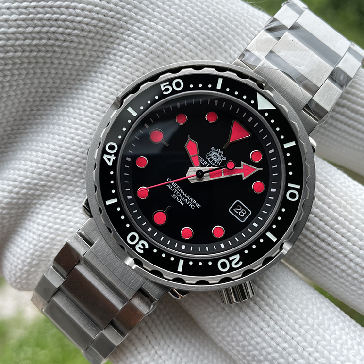 Steeldive Black Dial Fuxia Luminous 30ATM 47.5MM NH35 Automatic Tuna Mens Dive Watch SD1975T