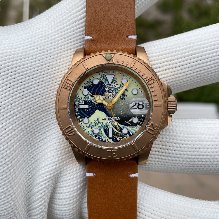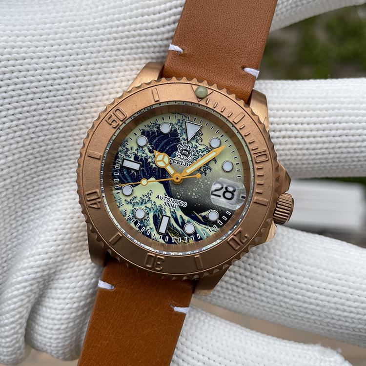 Steeldive Leather Strap Mens Bronze Dive Watch 41MM Kanagawa Japan Automatic Movt Luminous SD1953SJ