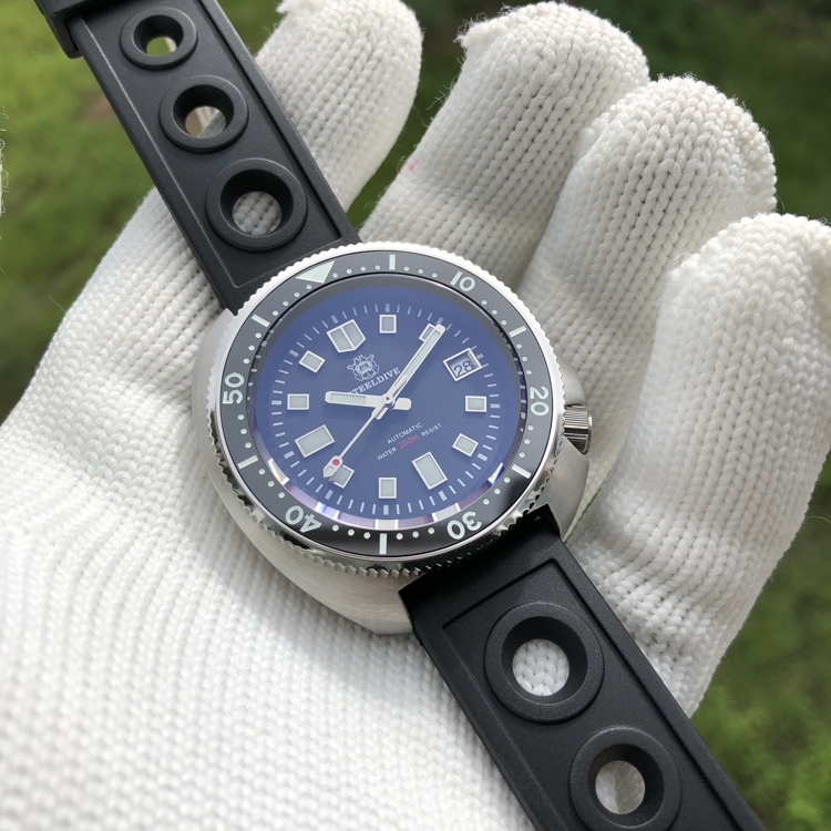 PT5000 Movt Rubber Strap 44mm Black Dial Steeldive Mens Dive Watch Swiss Luminous 20ATM SD1970T