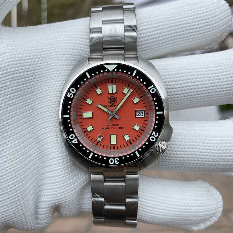 Steeldive Orange Dial 43.8MM Japan Automatic Mechancial Movt Swiss Luminous 20ATM Mens Tuna Dive Watch SD1974