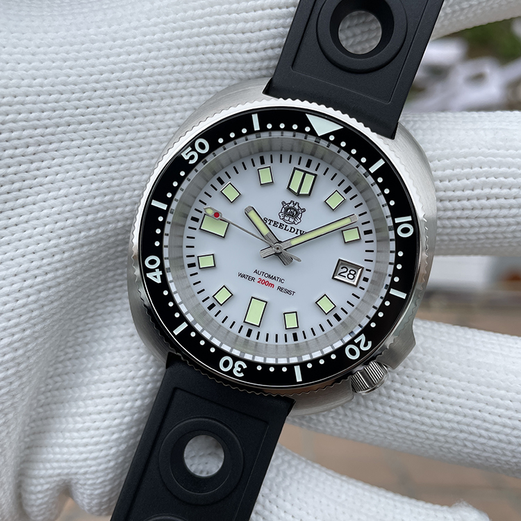 Steeldive Rubber Strap White Dial 43.8MM Japan Automatic Mechancial Movt Swiss Luminous 20ATM Mens Tuna Dive Watch SD1974
