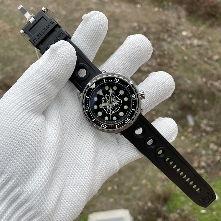 Steeldive Rubber Strap Men's Tuna Dive Watch 47.5mm Japan Automatic Mechancial Movt 30ATM Swiss Luminous Wristwatch SD1975P
