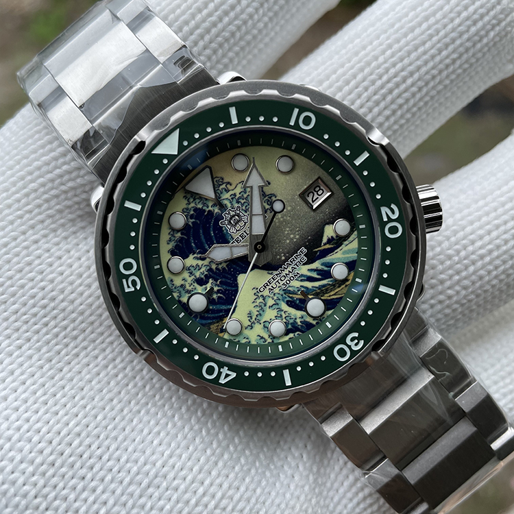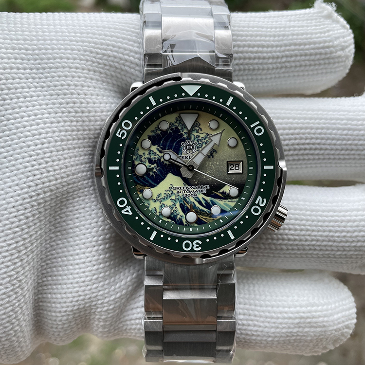 Steeldive Green Bezel 47.5MM Kanagawa Dial Japan Automatic Mechancial Movt Swiss Luminous Mens Dive Watch SD1975J