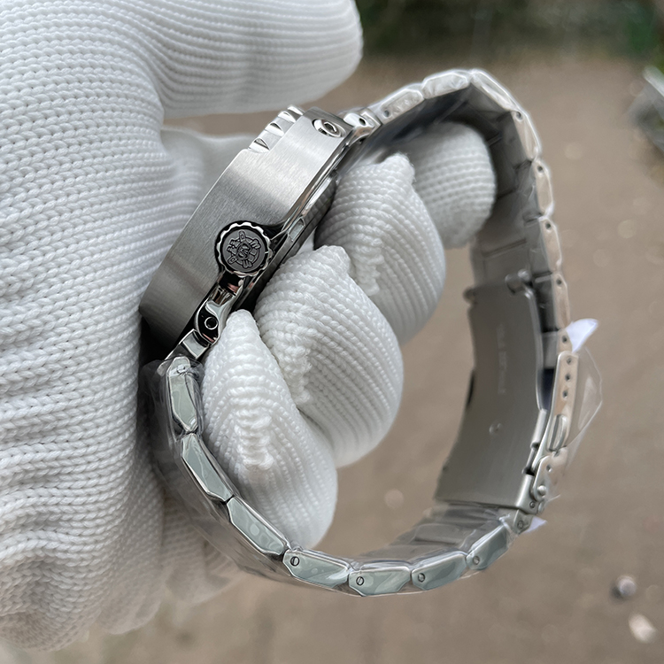 Bezel features: 120 teeth, counter-clockwise unidirectional rotating chronograph