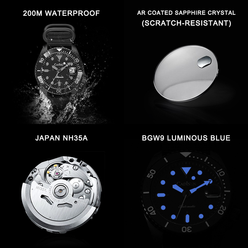 Cadisen watch 40mm case NH35A mechanical movt luminous 20ATM diving watch 8220