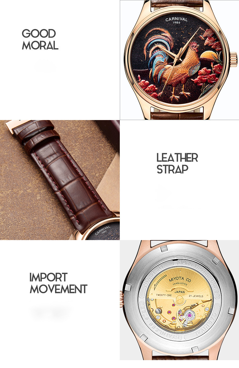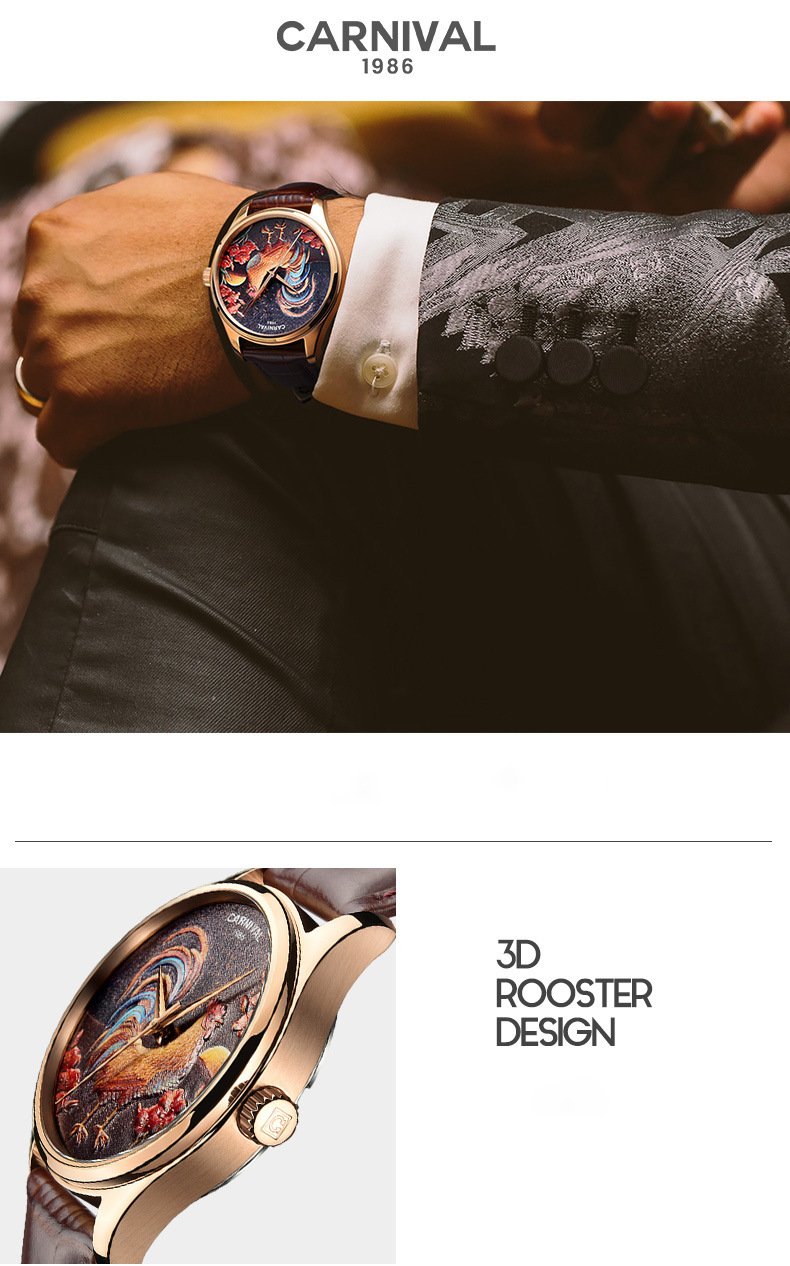 Rooster Carnival watch Symbolic Animals 41mm dial Japanese mechanical movt 3ATM causal business wristwatch 515G