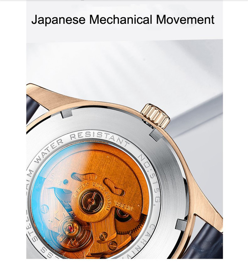 Movement: Japan Miyota automatic mechanical; runs by hand or wrist movement; never needs batteries & requires little care
