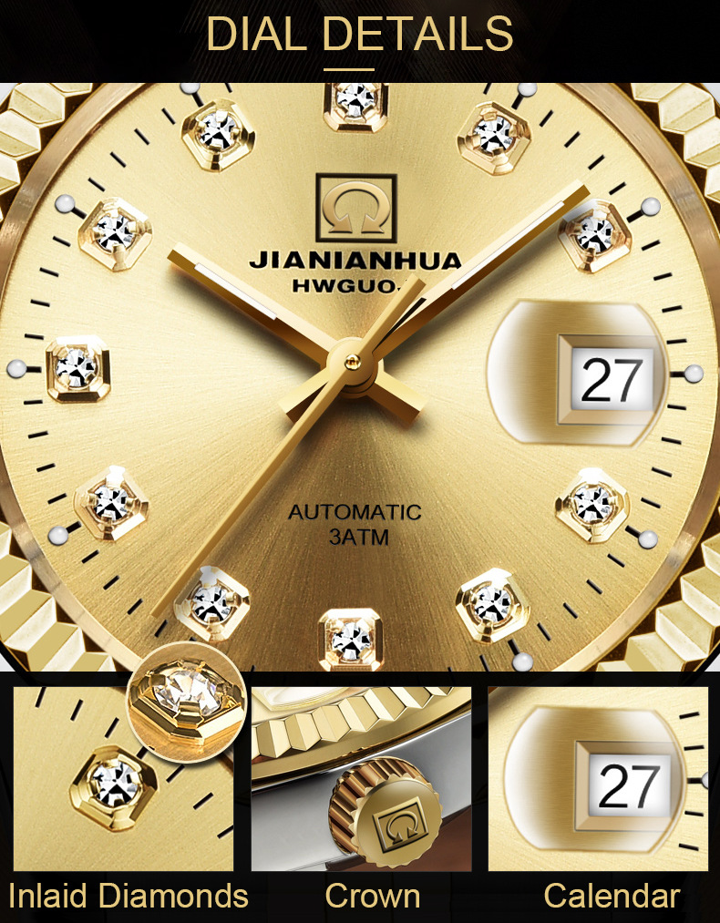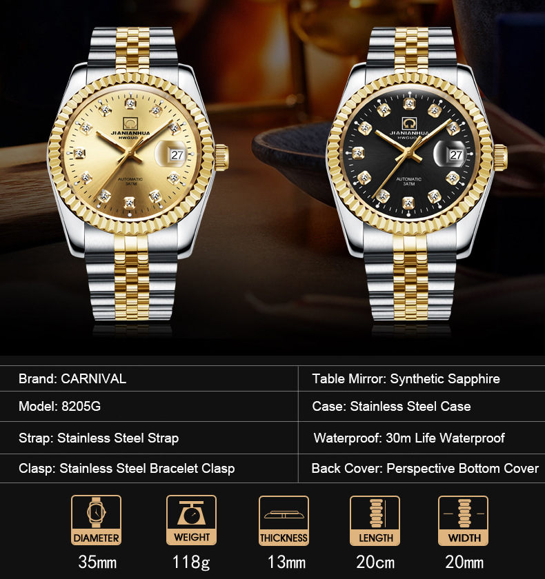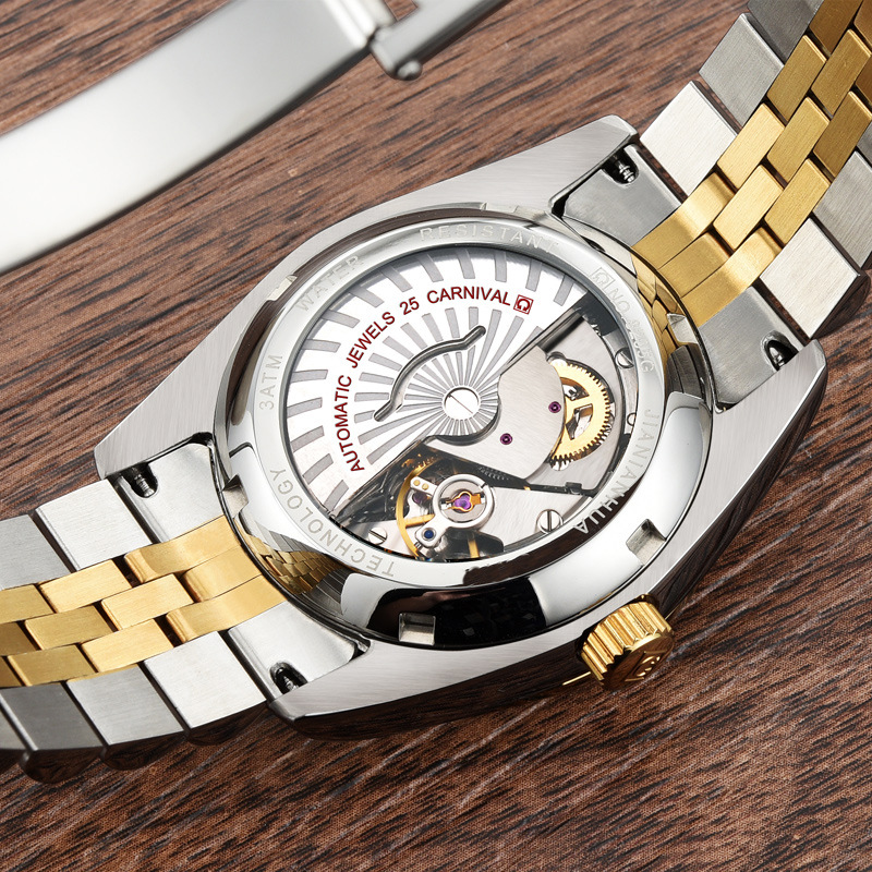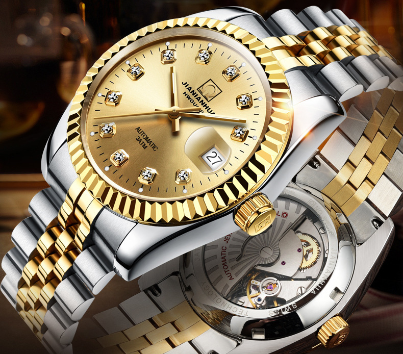 Movement: Seagull automatic mechanical; runs by hand or wrist movement; never needs batteries & requires little care