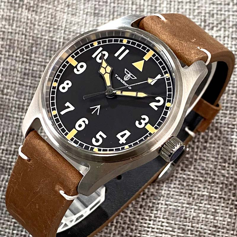 Customized Tandorio Mens watches 39mm dial pilot NH35A PT5000 mechanical movt 20bar luminous causal retro wristwatch T111