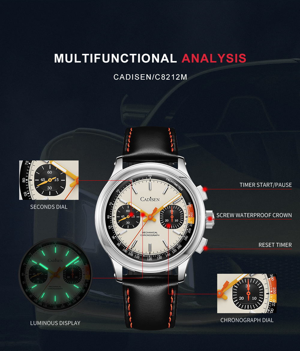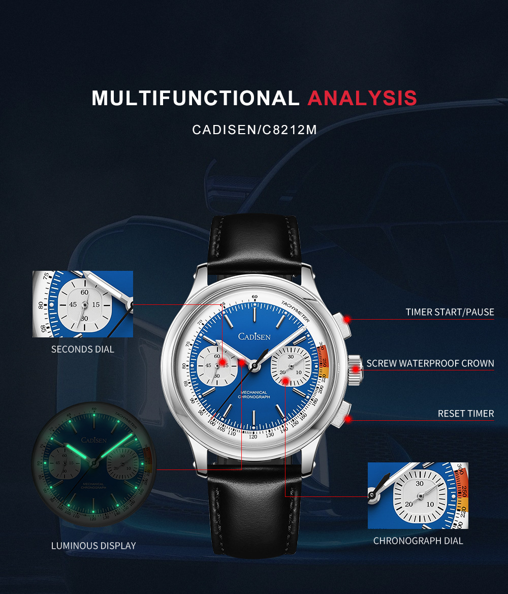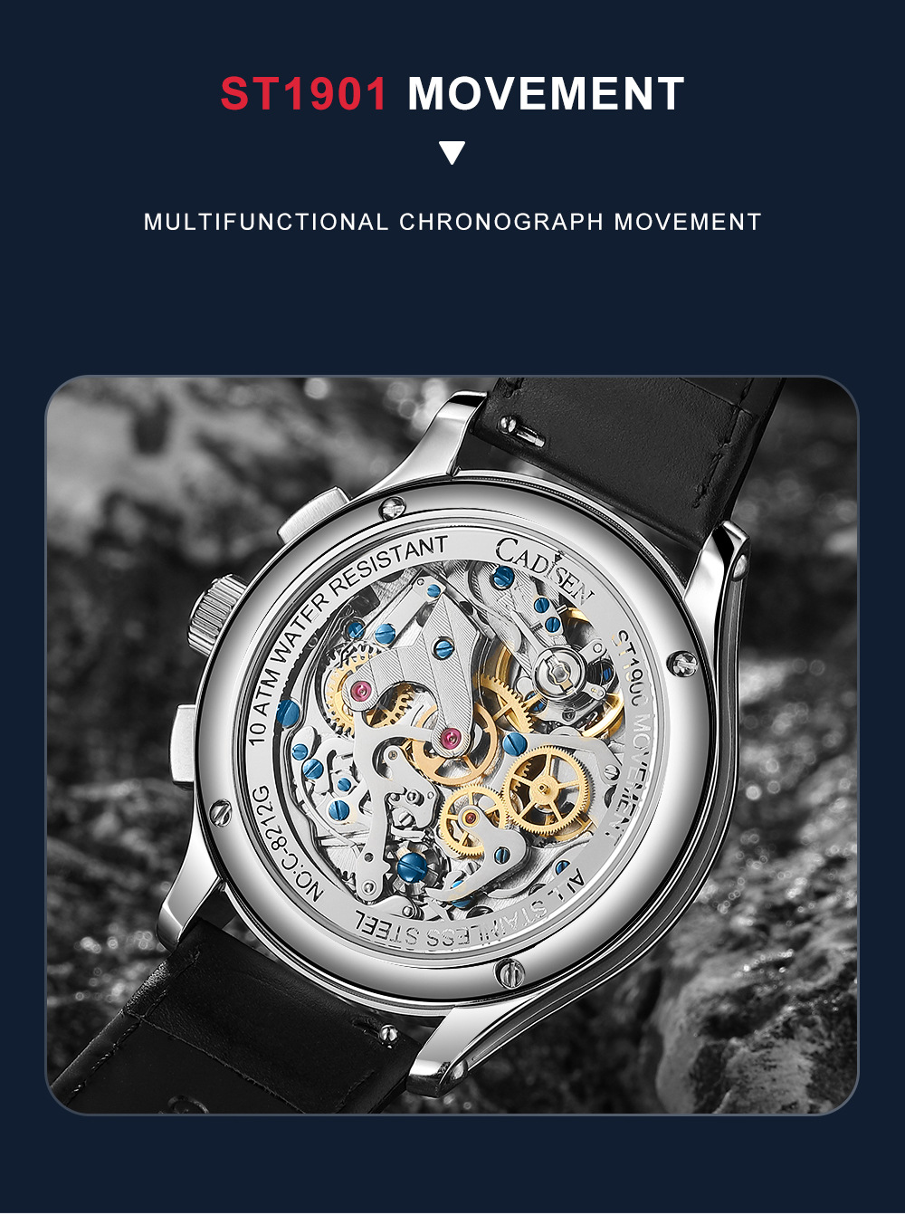 Cadisen Watches Mens 40mm case multi-function automatic mechanical luminous 10ATM business wristwatch C8212