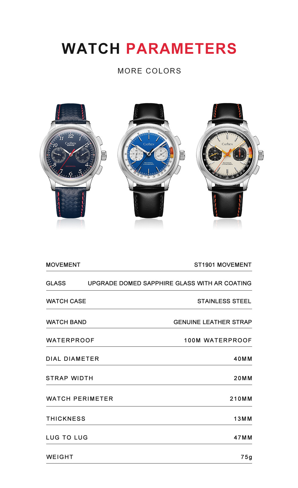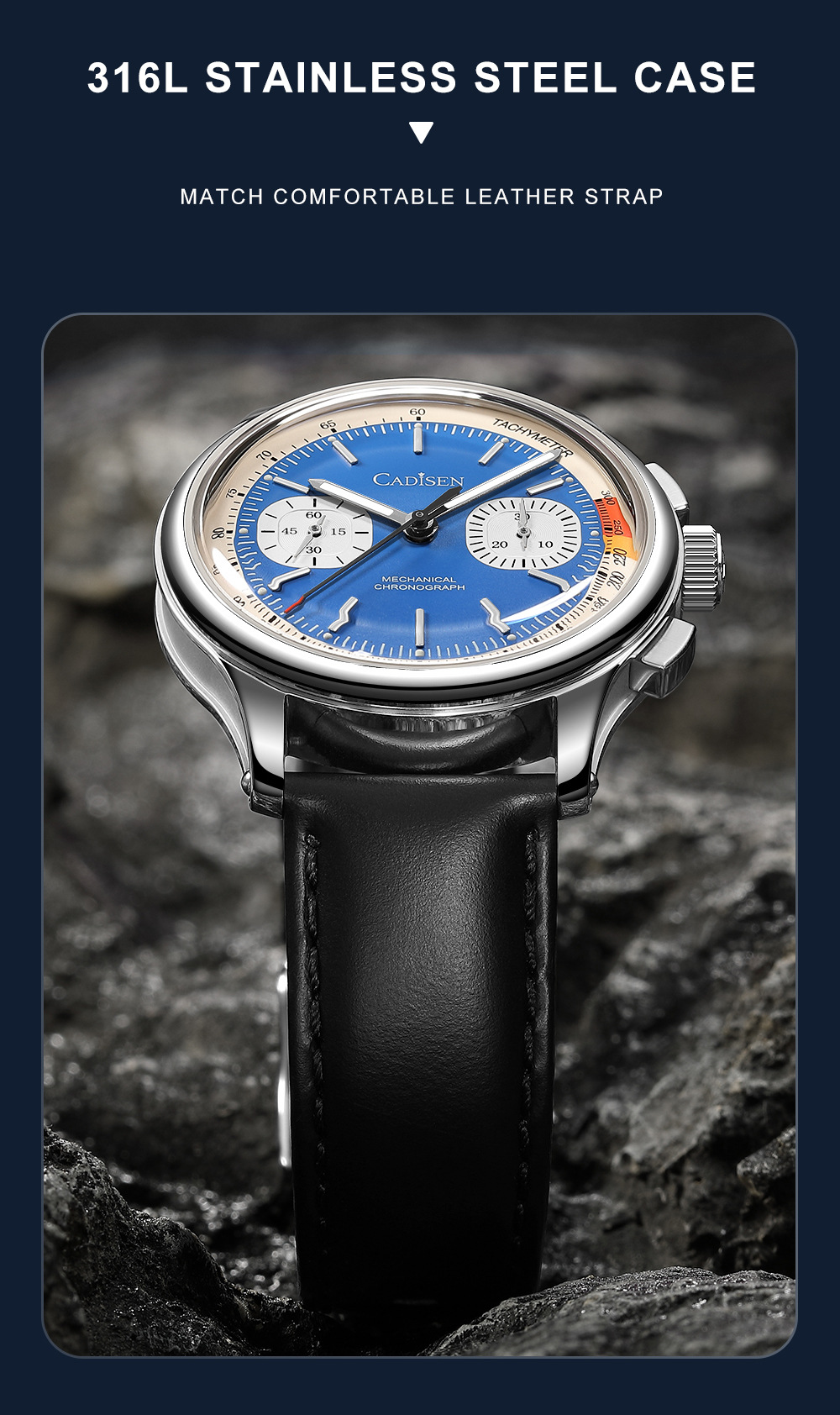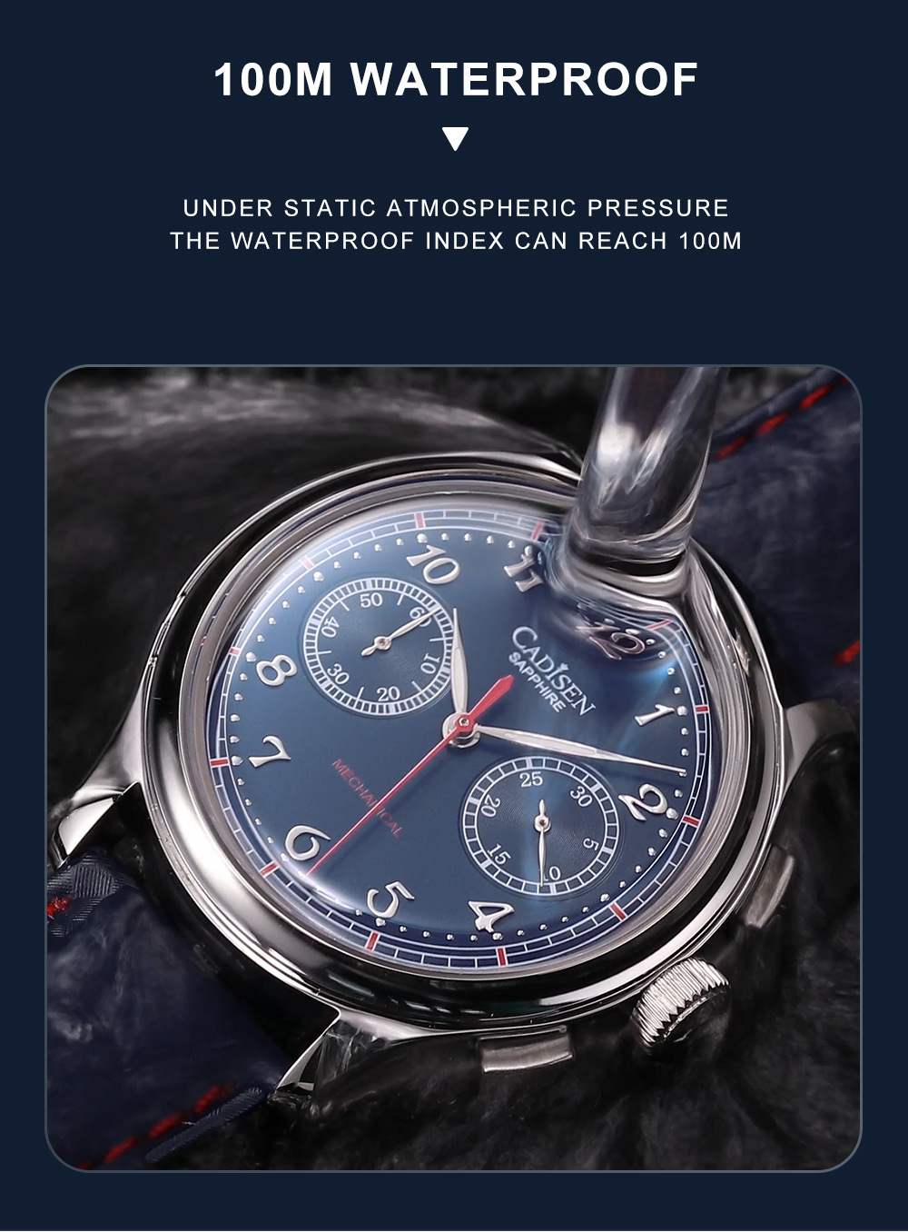 Cadisen Watches Mens 40mm case multi-function automatic mechanical luminous 10ATM business wristwatch C8212
