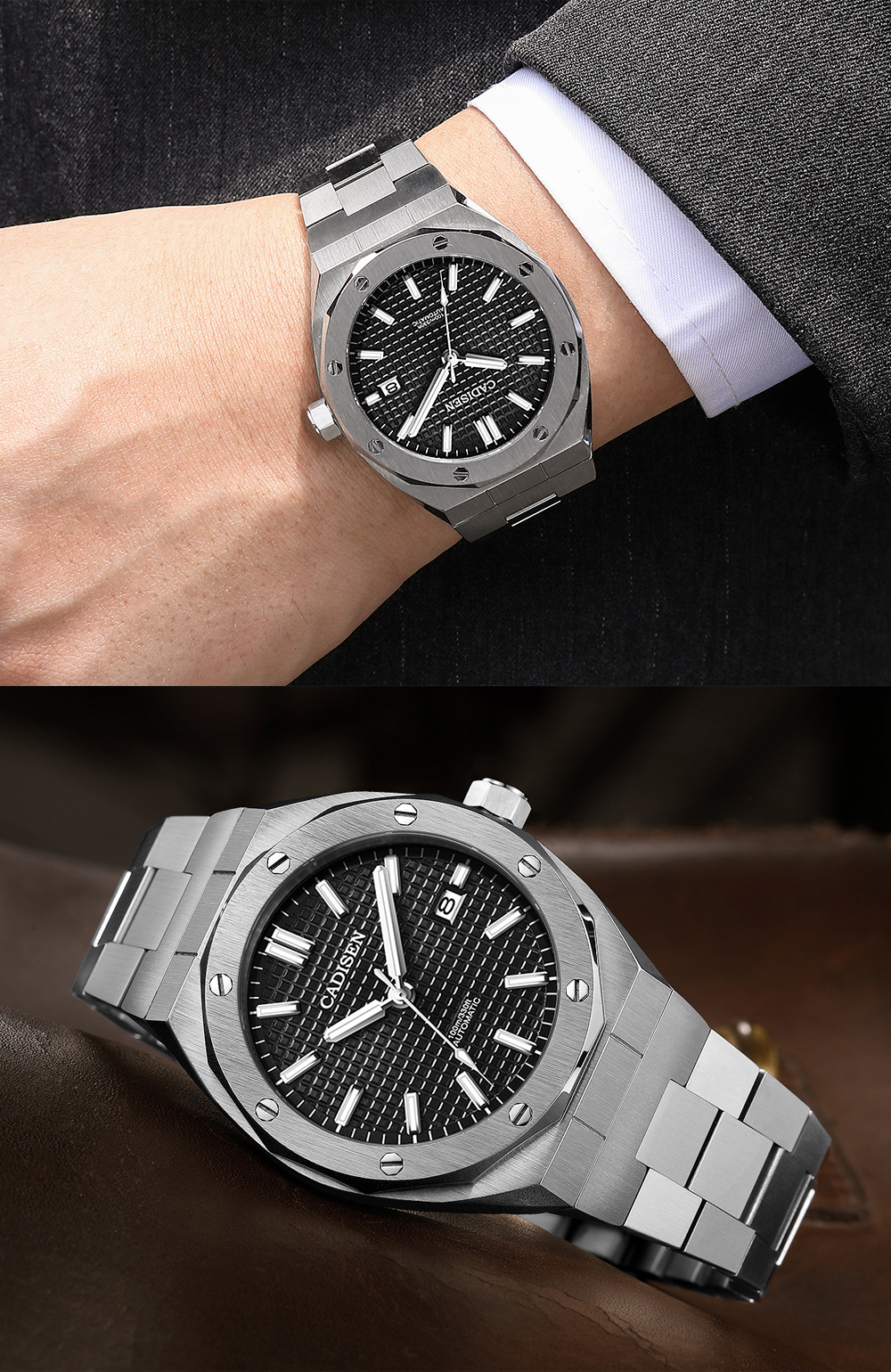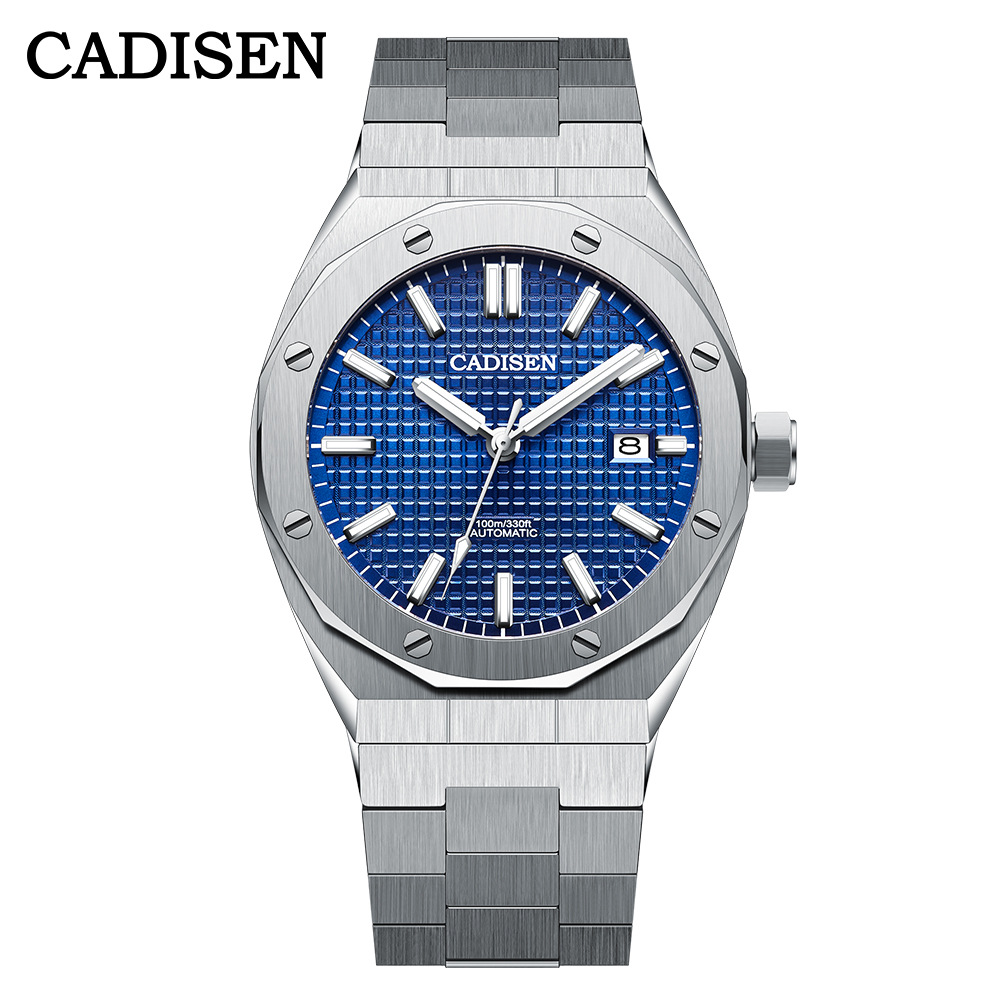 Grid dial Cadisen Mens watches Japanese NH35A automatic mechanical luminous 10BAR business wristwatch C8193